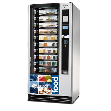 A sleek new vending machine that offers snacks and confectionery, chilled Food, and chilled can and ...